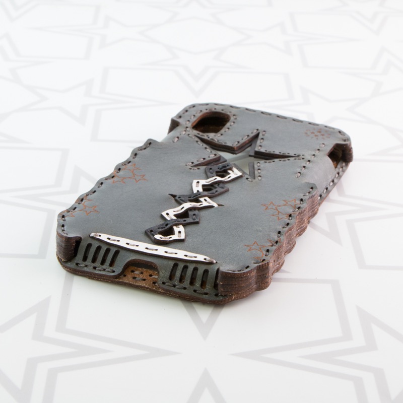 Appleマークが覗く大きな五芒星と個性的なカットが目を惹くデザインは、iPhone本体が透けるくり抜きを施したさりげない遊び心がポイント。