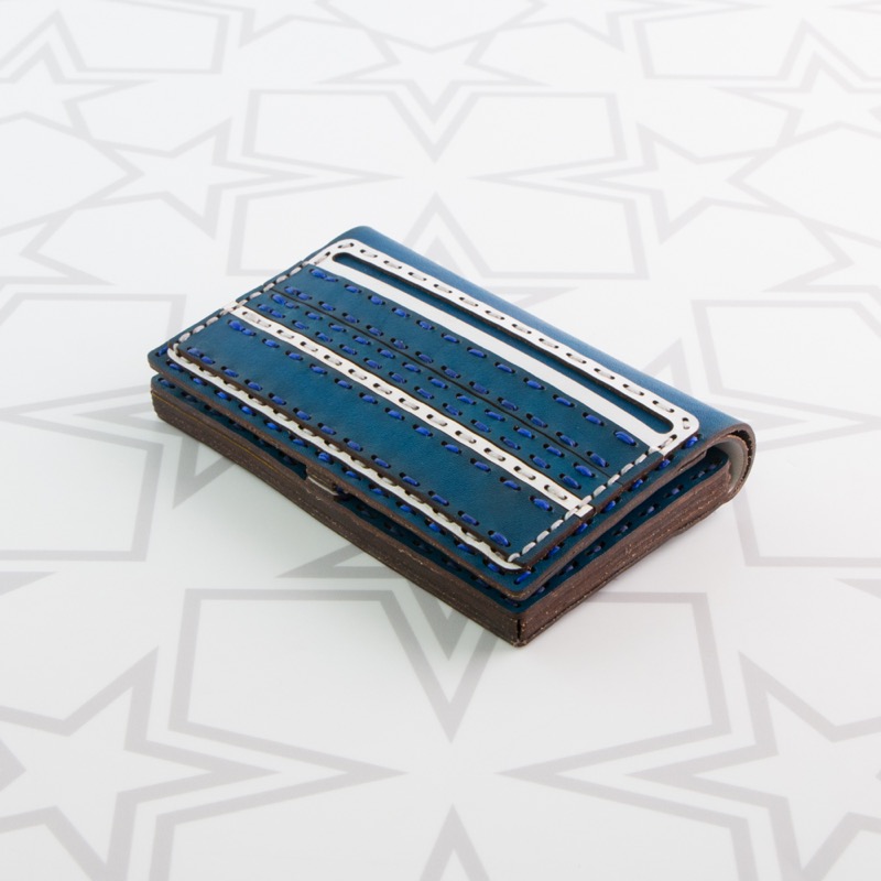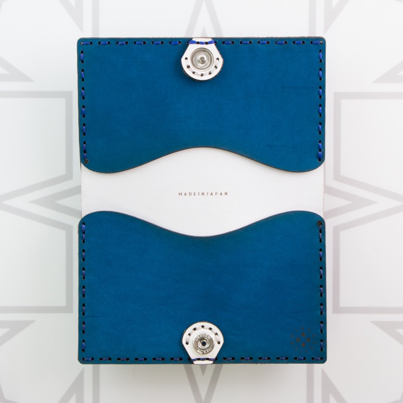 ボーダーデザインの新アイテム、ボタンタイプのカードケースです。たくさんのカラーを楽しめるランダムなボーダーが個性的なデザインに仕上げました。開くと二箇所のカードポケットが備わっており、外側にも数枚入るポケットが付いております。既存のボーダーシリーズのウォレットやコインケースと併せてのご使用もおすすめです。