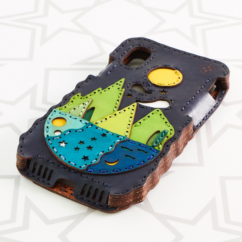 風景デザインのiPhone X/XS用ケースです。細かなカットとパーツを用いて、自然の風景をそのまま切り取ったような幻想的なデザインを表現しました。iPhone本体をしっかりと覆うことが出来、側面にもレザーを使用することで保護性を高め、ウェーブ状のカットを施すことで持ちやすさも重視。※お使いの充電器によってはワイヤレス充電機能がお使いいただけない場合がございます。予めご了承下さい。