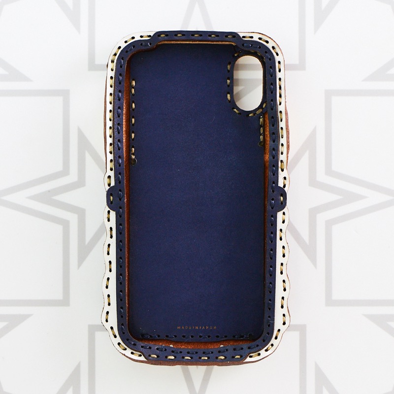 iPhone本体をしっかりと覆うことが出来、側面にもレザーを使用することで保護性を高め、ウェーブ状のカットを施すことで持ちやすさも重視。
