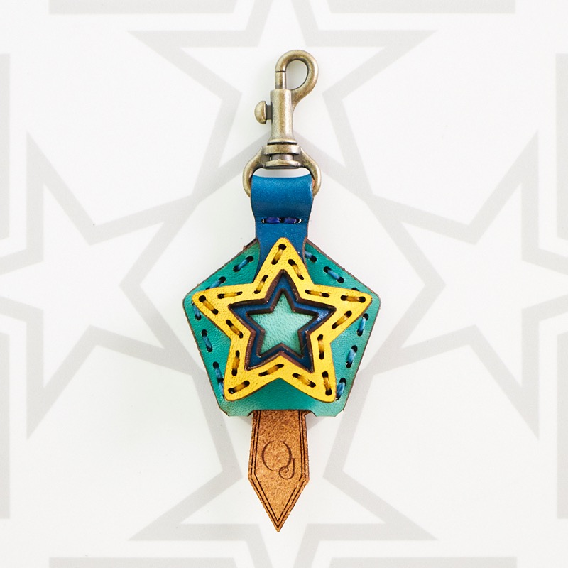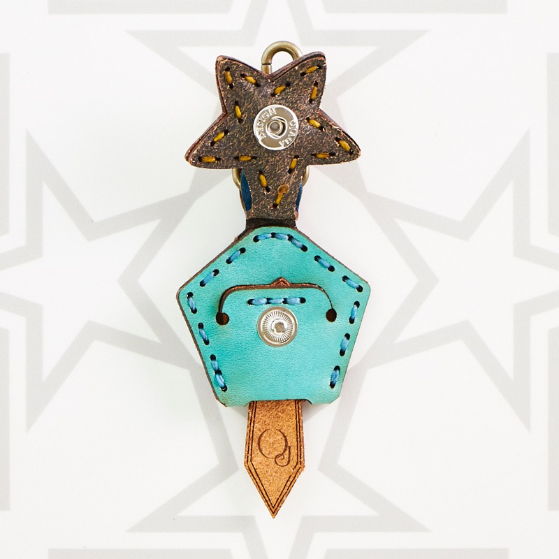 五芒星がデザインされたキーキャップです。ベースの五角形の上に3枚の革の五芒星を組み合わせた、立体感のある仕上がりです。お手持ちの鍵をおしゃれに彩るだけでなく鍵の目印にもなり、便利なナスカン付きなので、ベルトループ、キーホルダー、ファスナーなどに着けて紛失防止にも役立ちます。