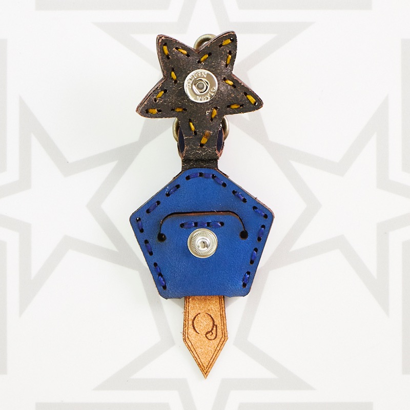五芒星がデザインされたキーキャップです。ベースの五角形の上に3枚の革の五芒星を組み合わせた、立体感のある仕上がりです。お手持ちの鍵をおしゃれに彩るだけでなく鍵の目印にもなり、便利なナスカン付きなので、ベルトループ、キーホルダー、ファスナーなどに着けて紛失防止にも役立ちます。