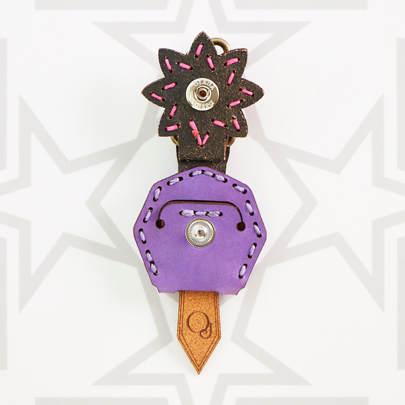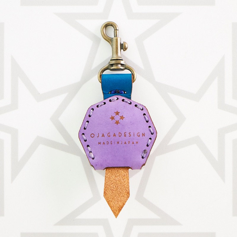 八芒星がデザインされたキーキャップです。三枚の革を重ねて表現した八芒星が印象的な仕上がりとなりました。お手持ちの鍵をおしゃれに彩るだけでなく鍵の目印にもなり、便利なナスカン付きなので、ベルトループ、キーホルダー、ファスナーなどに着けて紛失防止にも役立ちます。