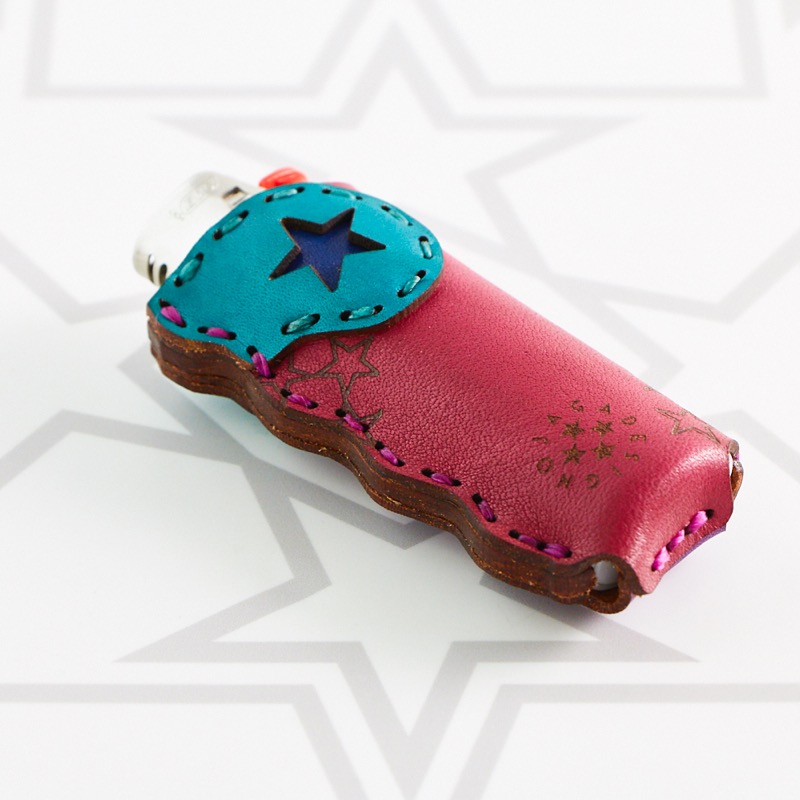 オジャガデザインのロゴマークである五芒星柄がベースとなり、握ったときの手にフィットするフォルムのライターケースです。両面で異なる2つの表情を楽しむことができるものとなっています。BICのライターがぴったり入るサイズです。