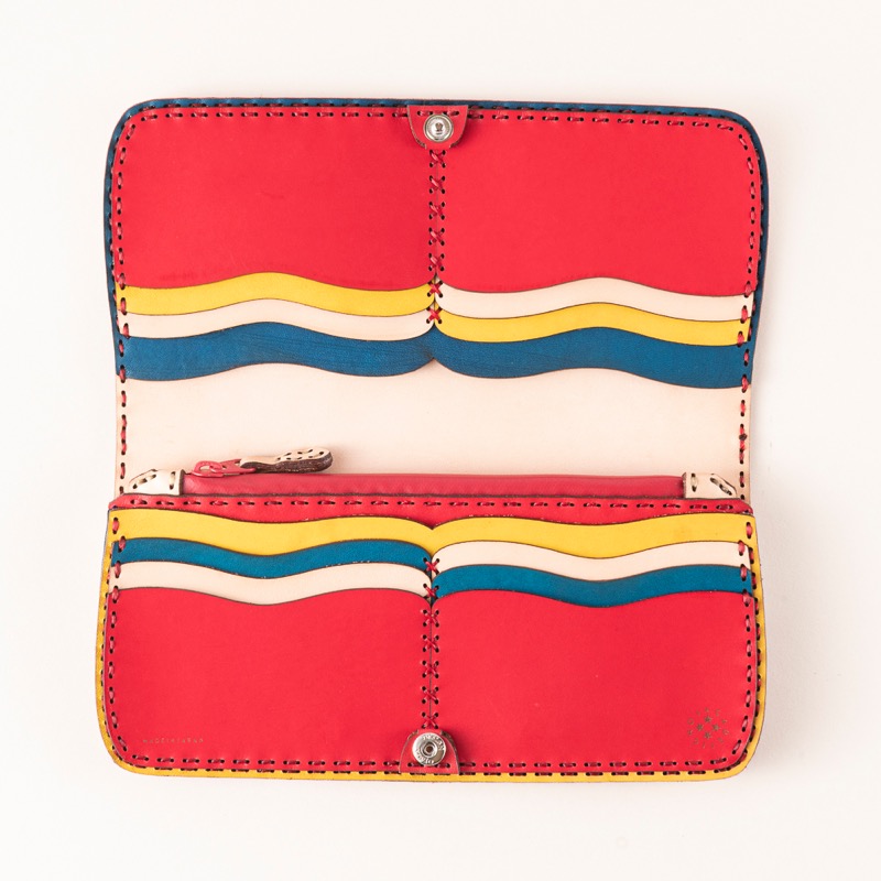 ジップタイプのコインポケットが付いたロングウォレットは、カードポケットにモスクをイメージしたカットを施しました。
