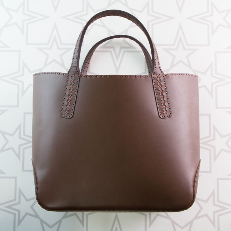 ミニサイズのトートバッグです。大きすぎず小さすぎない絶妙なサイズにマチを約12センチと広めに取ることで、小ぶりな見た目ながらにたっぷり荷物が入る普段使いしやすいトートバッグに仕上がりました。コロンとしたフォルムが際立つシンプルなデザインで、ハンドル部分にワンポイントでクロスステッチを施しました。裏地にスエードを使用しているので、素材の違いも楽しめます。同日に発売するタッセルチャームとの組み合わせがおすすめです。