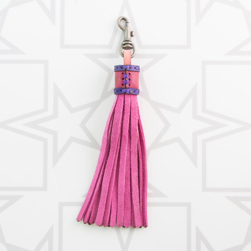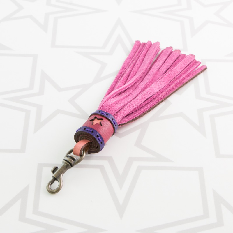 スエードを使用したタッセルチャームです。小さな星がワンポイントになった、スエードのフリンジが揺れるタッセルです。ファッションのアクセントになる大きめのサイズ感で、シンプルなアイテムにぴったり。ファスナートップやキーホルダー、Dカンなどに着けられるナスカンタイプと、トートバッグなどのハンドル部分に最適なベルトタイプの2種類をご用意しており、こちらはナスカンタイプ。カラーも豊富に取り揃えているので、お手持ちのアイテムに合わせてコーディネートをお楽しみ下さい。