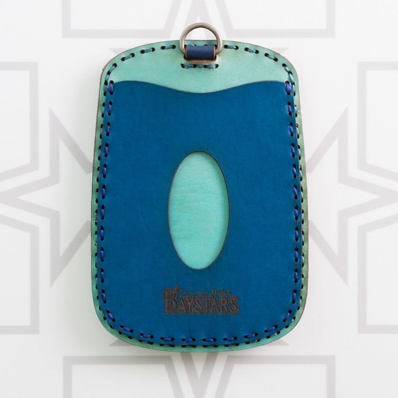 横浜DeNAベイスターズのアイテム。ロゴマークのBをデザインした丸みのある個性的なフォルムのパスケースです。さりげなくファンをアピールできる、普段使いに最適なアイテムに仕上がりました。ポケットが2箇所付き、カードの取り出しがしやすいように外ポケットには楕円形のくり抜きを施しました。裏面にDカンが付いているので、通勤や通学で便利にお使いいただけます。球団カラーのブルーと、シックなブラックとブラウンの計3色展開です。