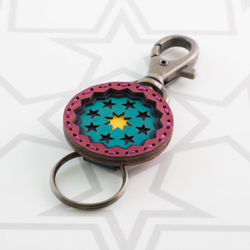 新作のキーホルダーが登場。ベルトループやバッグなどに簡単に着脱が出来るナスカンと、キーキャップや鍵を着けることが出来る二重リングが着いた便利な仕様です。丸いフォルムの中に八芒星と五芒星を散りばめたデザインで、小ぶりで使いやすいアイテムです。お気に入りのキーキャップと合わせてコーディネートをお楽しみ下さい。