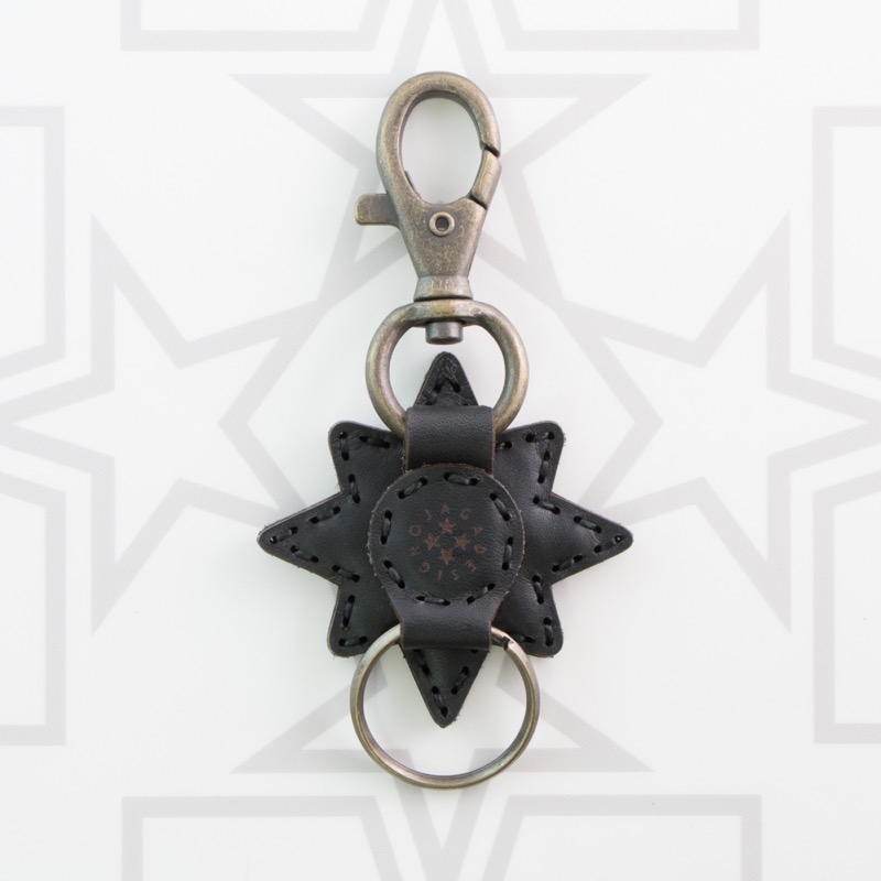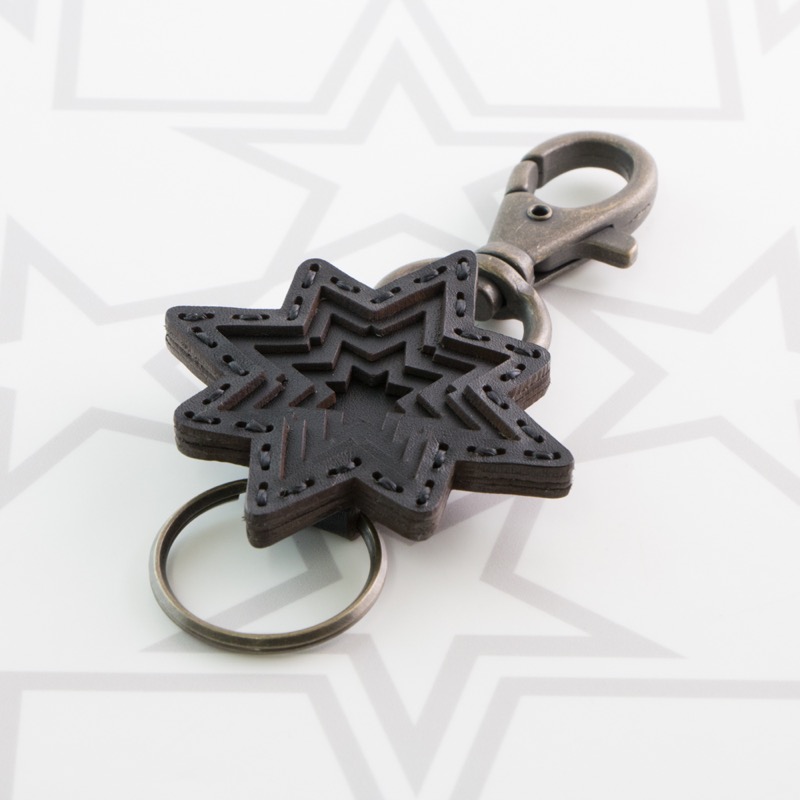 新作のキーホルダーが登場。ベルトループやバッグなどに簡単に着脱が出来るナスカンと、キーキャップや鍵を着けることが出来る二重リングが着いた便利な仕様です。革を幾重にも重ねて八芒星を型取り、インパクトのあるデザインに仕上がりました。お気に入りのキーキャップと合わせてコーディネートをお楽しみ下さい。