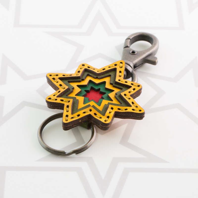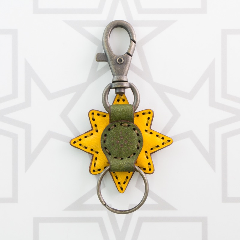 新作のキーホルダーが登場。ベルトループやバッグなどに簡単に着脱が出来るナスカンと、キーキャップや鍵を着けることが出来る二重リングが着いた便利な仕様です。革を幾重にも重ねて八芒星を型取り、インパクトのあるデザインに仕上がりました。お気に入りのキーキャップと合わせてコーディネートをお楽しみ下さい。