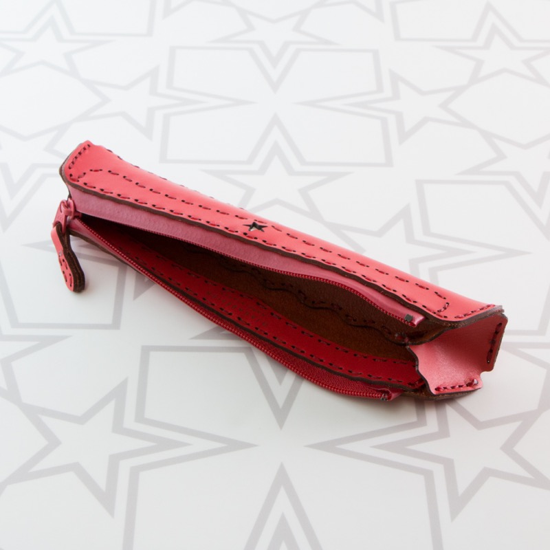 ボールペンが約5本入り、大きく開くジップタイプなので中も見やすい作りとなっております。