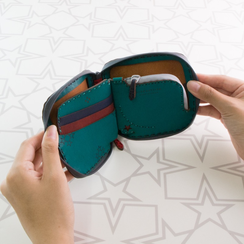 大きく開く札入れ、ジップタイプのコインケース、3つのカードポケットがついています。