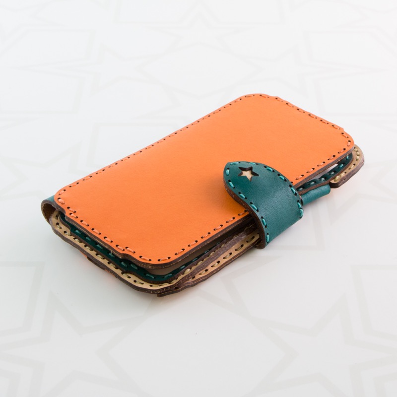 従来のタイプではなく、重ねずに革でマチを作ることでスッキリとしたフォルムになり、スリムな見た目に仕上がりました。