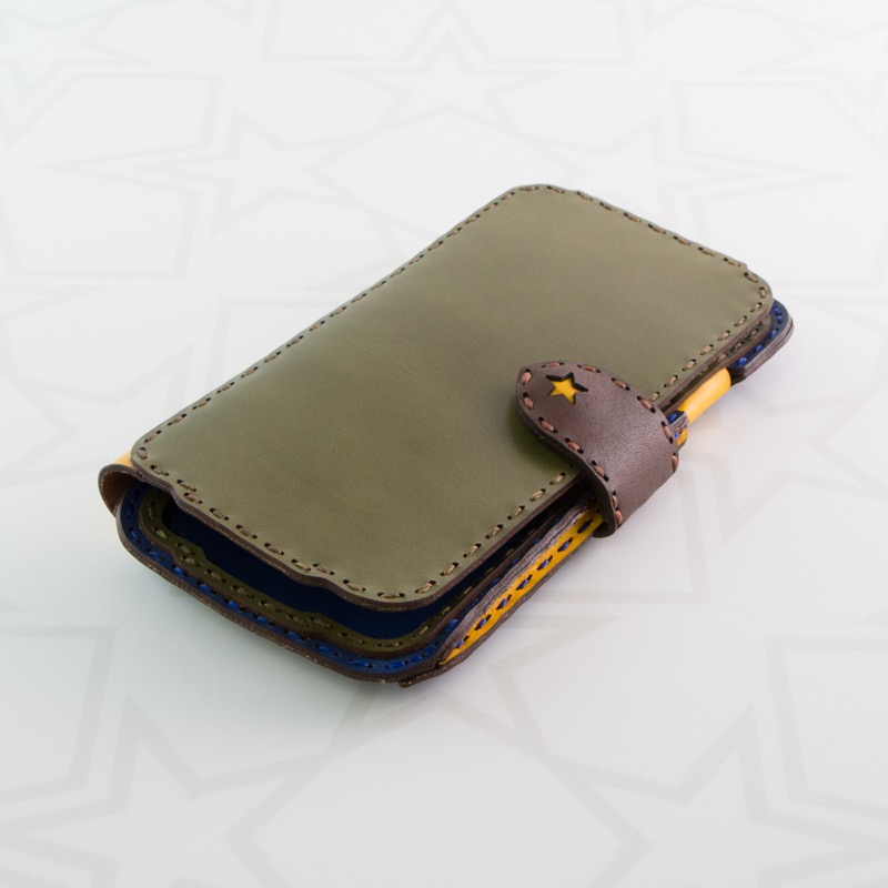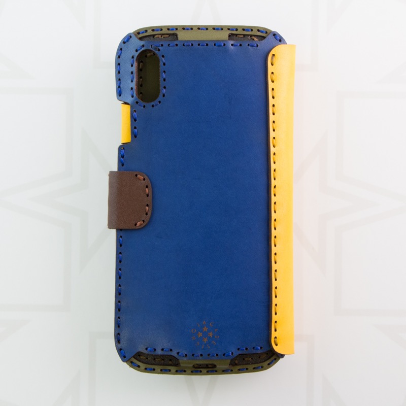 ダイアリータイプのiPhone XS Maxケースです。ベルト部分に小さな五芒星を配置したシンプルなデザイン。ケースを開いたフタ部分には、中に仕切りが付いたポケットが付いています。従来のタイプではなく、重ねずに革でマチを作ることでスッキリとしたフォルムになり、スリムな見た目に仕上がりました。※お使いの充電器によってはワイヤレス充電機能がお使いいただけない場合がございます。予めご了承下さい。
