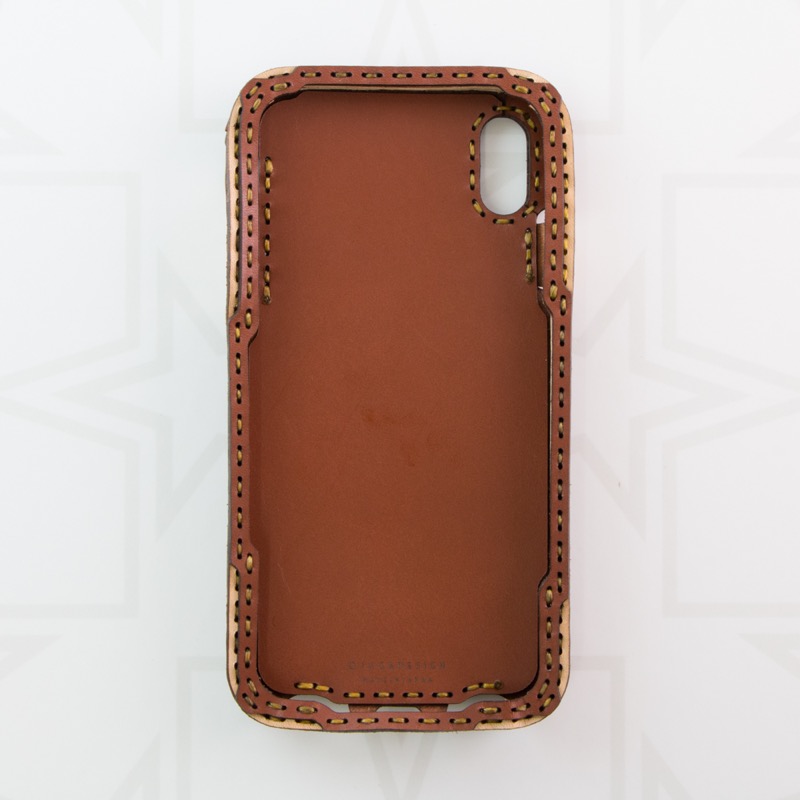 シンプルなデザインのiPhone XS Maxケースです。ポケット付きのケースにOJAGA STARをデザインしました。サイドのマチ部分にもさりげなくデザインが入りました。マチまでレザーで仕上げることで保護性が高くなるだけでなく、長く使うことで手にしっくりと馴染みます。※お使いの充電器によってはワイヤレス充電機能がお使いいただけない場合がございます。予めご了承下さい。