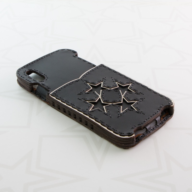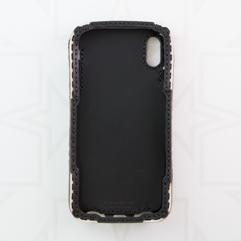 シンプルなデザインのiPhone XS Maxケースです。ポケット付きのケースにOJAGA STARをデザインしました。サイドのマチ部分にもさりげなくデザインが入りました。マチまでレザーで仕上げることで保護性が高くなるだけでなく、長く使うことで手にしっくりと馴染みます。※お使いの充電器によってはワイヤレス充電機能がお使いいただけない場合がございます。予めご了承下さい。