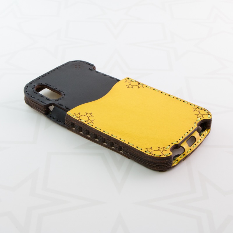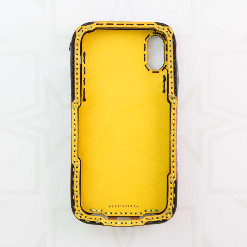 シンプルなデザインのiPhone XRケースです。オジャガスターを配置したシンプルなデザインにポケットが付きました。サイドのマチ部分にもさりげなくデザインが入りました。マチまでレザーで仕上げることで保護性が高くなるだけでなく、長く使うことで手にしっくりと馴染みます。