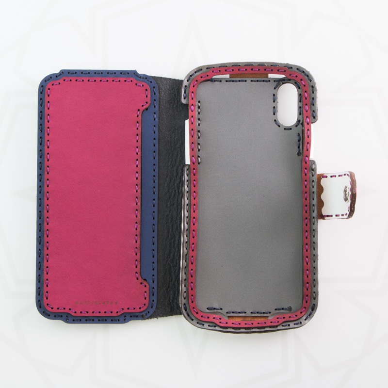 ダイアリータイプのiPhone XRケースです。ベルト部分に小さな五芒星を配置したシンプルなデザイン。ケースを開くとフタ部分に中に仕切りが付きました。従来のタイプではなく、重ねずに革でマチを作ることでスッキリとしたフォルムになり、スリムな見た目に仕上がりました。※お使いの充電器によってはワイヤレス充電機能がお使いいただけない場合がございます。予めご了承下さい。
