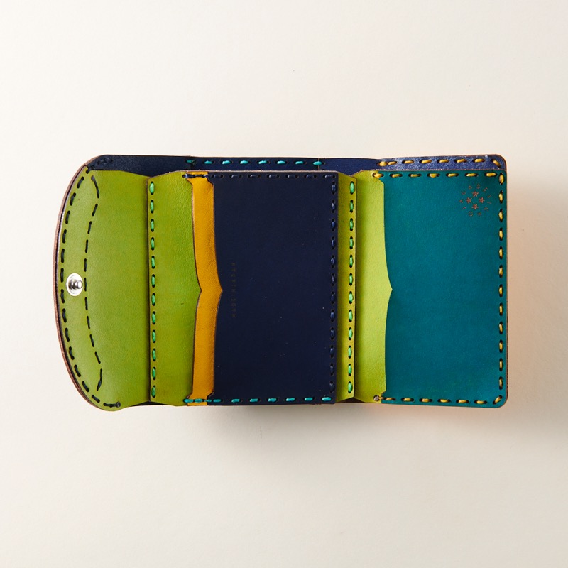 大きく開く二ヶ所のポケットに月と星がデザインされた可愛いデザインが特徴のミニウォレット。外側に付いた使いやすいコインケース部分、内側にはお札入れの他に、3箇所のカード収納スペースがあり、カードケースのようにコンパクトサイズながら使い易く収納力に優れたミニウォレット。電子マネー時代に合ったコンパクトさが魅力なアイテムとなっております。