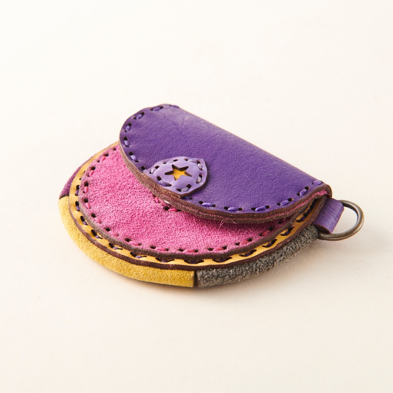丸いシルエットが可愛らしいコンパクトなコインケース。たくさんのカラーを楽しめる個性的なデザインに仕上げました。手のひらに収まる小さなサイズで、バッグの中でも場所を取らず、ポーチにもポケットにも入り便利です。Dカンが付いているのでキーチェンに付けたりアクセントとしても最適なアイテムです。