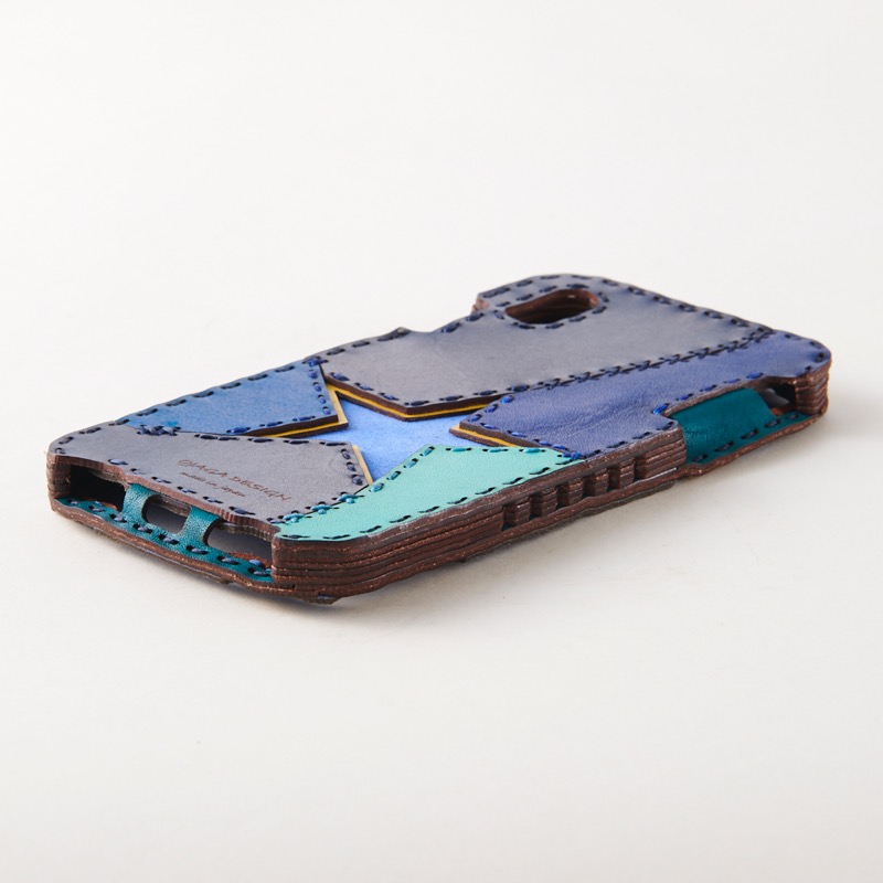 パッチワークデザインのiPhone XS Max用ケースです。大きく五芒星を配置したデザインのケースは切り返しでたくさんの色を使い、クロスステッチを施しました。サイドのマチ部分にもさりげなくデザインが入りました。マチまでレザーで仕上げることで保護性が高くなるだけでなく、長く使うことで手にしっくりと馴染みます。※お使いの充電器によってはワイヤレス充電機能がお使いいただけない場合がございます。