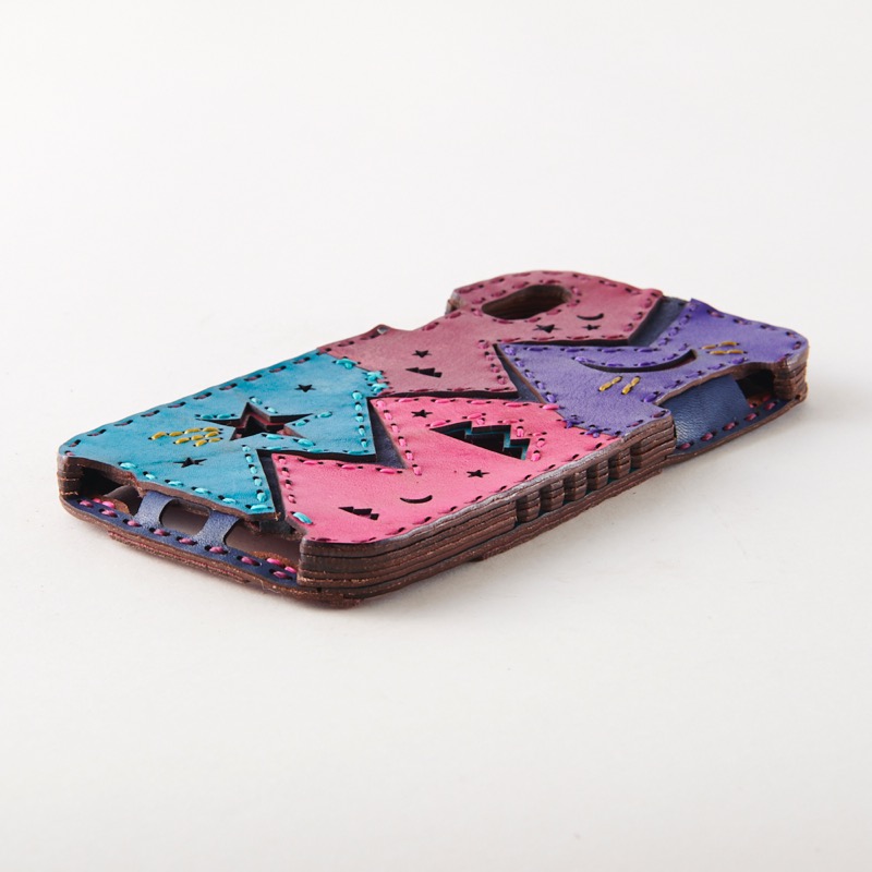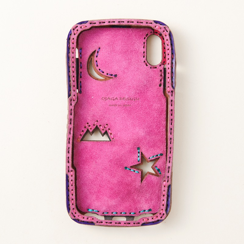 パッチワークデザインのiPhone XS Max用ケースです。月、星、山のデザインで対応機種によってデザインが異なり、星や月の小さなくり抜き、デザインにステッチを取り入れたりと、個性豊かなアイテムに仕上がりましたサイドのマチ部分にもさりげなくデザインが入りました。マチまでレザーで仕上げることで保護性が高くなるだけでなく、長く使うことで手にしっくりと馴染みます。※お使いの充電器によってはワイヤレス充電機能がお使いいただけない場合がございます。