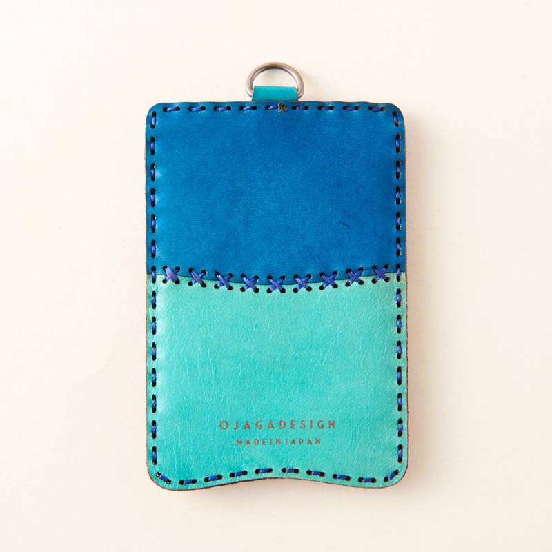 質感が良いスエードを使ったコンビネーションデザインのパスケースです。前面には五芒星をさりげなく配置したシンプルなデザインになっておりカードの出し入れもしやすくなっております。裏面に付いたリングにはチェーンやストラップを付けられるので、通勤・通学に便利なアイテムです。