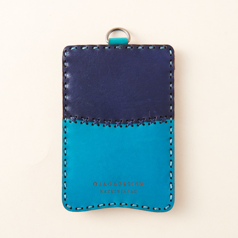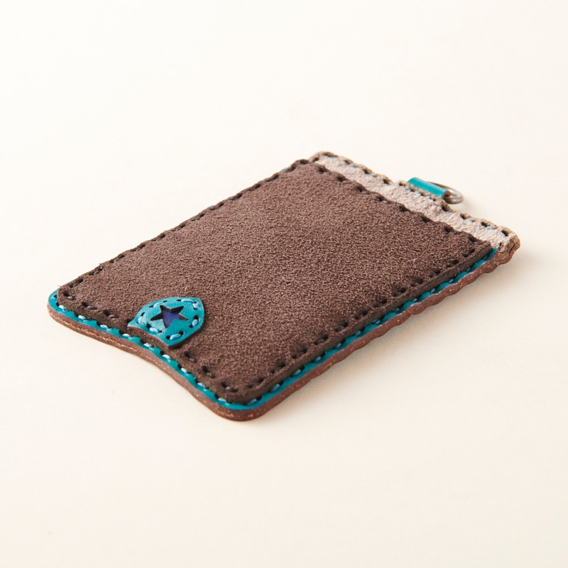 質感が良いスエードを使ったコンビネーションデザインのパスケースです。前面には五芒星をさりげなく配置したシンプルなデザインになっておりカードの出し入れもしやすくなっております。裏面に付いたリングにはチェーンやストラップを付けられるので、通勤・通学に便利なアイテムです。