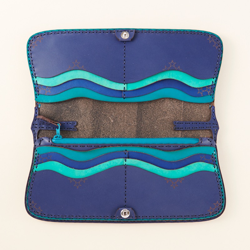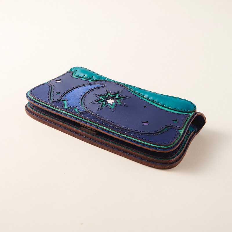 三日月と八芒星が印象的なロングウォレットです。