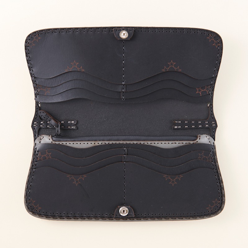 三日月と八芒星が印象的なロングウォレットです。