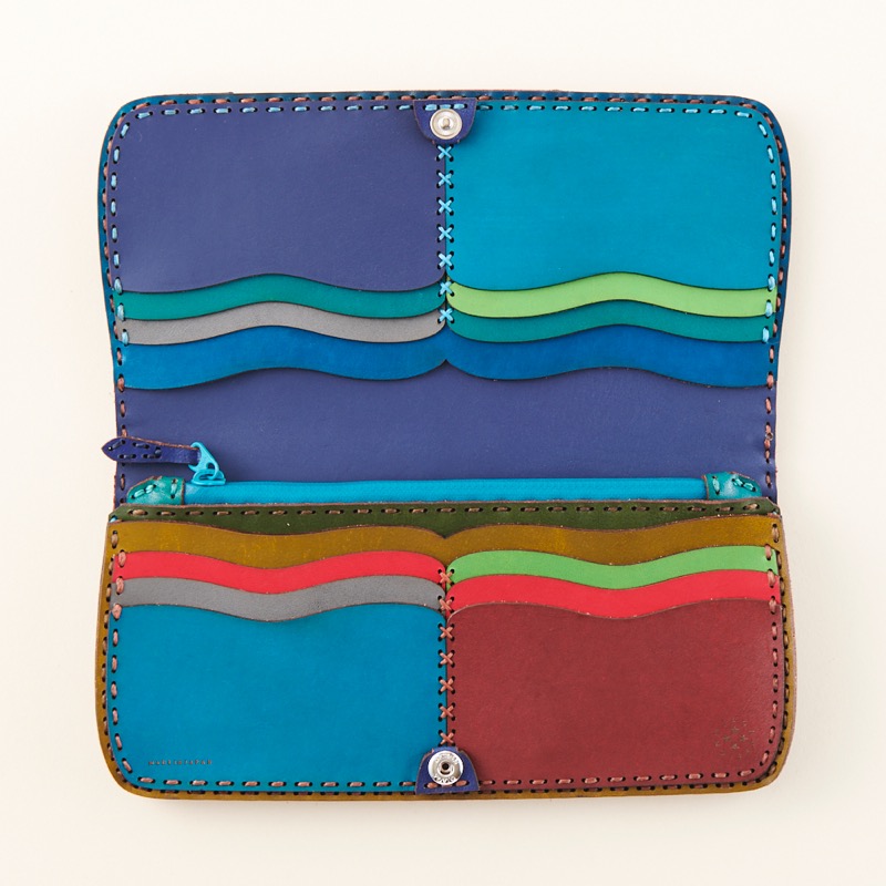 パッチワークデザインのロングウォレットです。雲や川をイメージした独特なカッティングを全面に施した個性的なデザイン。背面にもデザインが入り、今までにない雰囲気のウォレットに仕上がりました。内側はたくさんのカラーを使った開ける度に楽しくなるようなアイテムに仕上がりました。ジップタイプのコインポケットが付いたロングウォレットは、カードポケットにモスクをイメージしたカットを施しました。丸みを帯びた曲線が特徴的で遊び心のあるデザインです。※商品のDカンはオプションで取り付け可能です。Dカン取り付けのご注文はこちらから↓https://szhotelkc.com/products/detail/15871?category_id=取り付けイメージhttps://szhotelkc.com/products/detail/17314?category_id=カラーバリエーションも豊富に展開中!お気に入りのカラーをお探し下さい↓https://szhotelkc.com/products/list.php?mode=search&name=BOTEINその他のロングウォレットはこちらから↓https://szhotelkc.com/products/list/144ショートウォレットをお探しの方はこちら↓https://szhotelkc.com/products/list/143