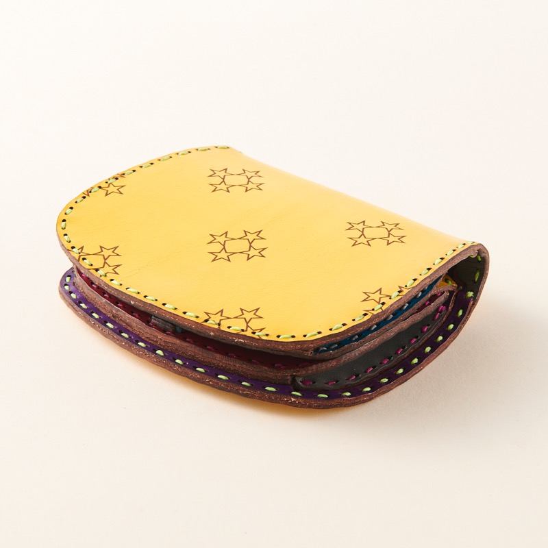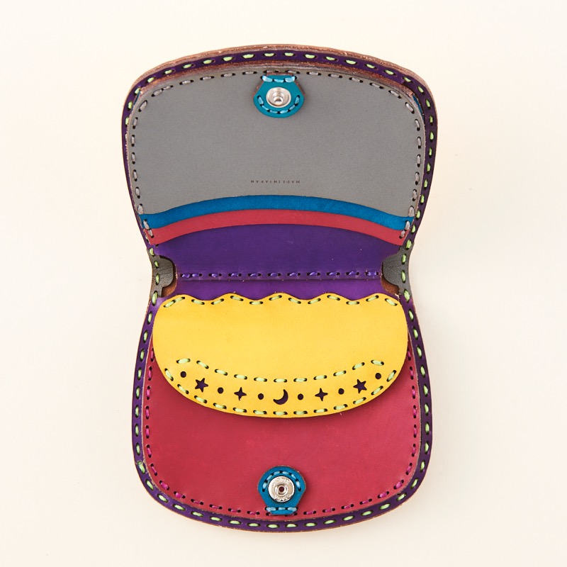 シンプルなデザインのショートウォレットです。外側はカラーが楽しめるオジャガスターのみを配置したシンプルなデザインで、内側はたくさんのカラーを使った開ける度に楽しくなるようなアイテムに仕上がりました。ボタンタイプのコインポケットが付いたショートウォレットは、コインポケットに月と星のくり抜きを施しました。丸みを帯びた曲線が特徴的で、シンプルな中にも遊び心のあるデザインです。※商品のDカンはオプションで取り付け可能です。実際の商品にはDカンは含まれません。Dカン取り付けのご注文はこちらから↓https://szhotelkc.com/products/detail/15871?category_id=取り付けイメージ