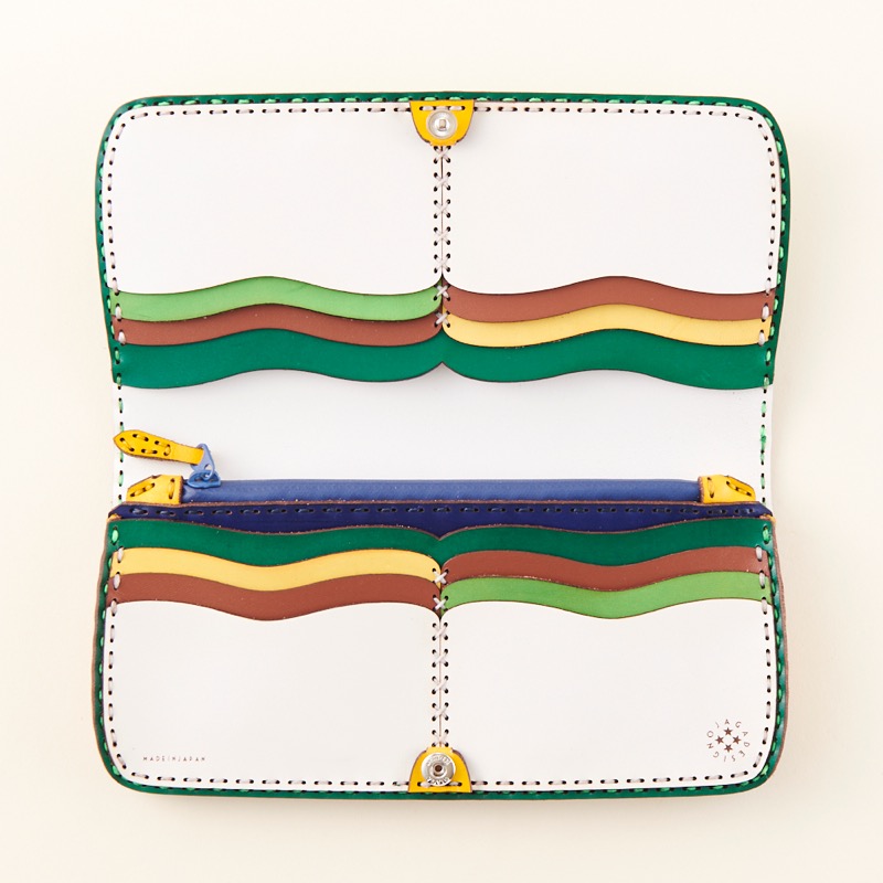 ジップタイプのコインポケットが付いたロングウォレットは、カードポケットにモスクをイメージしたカットを施しました。