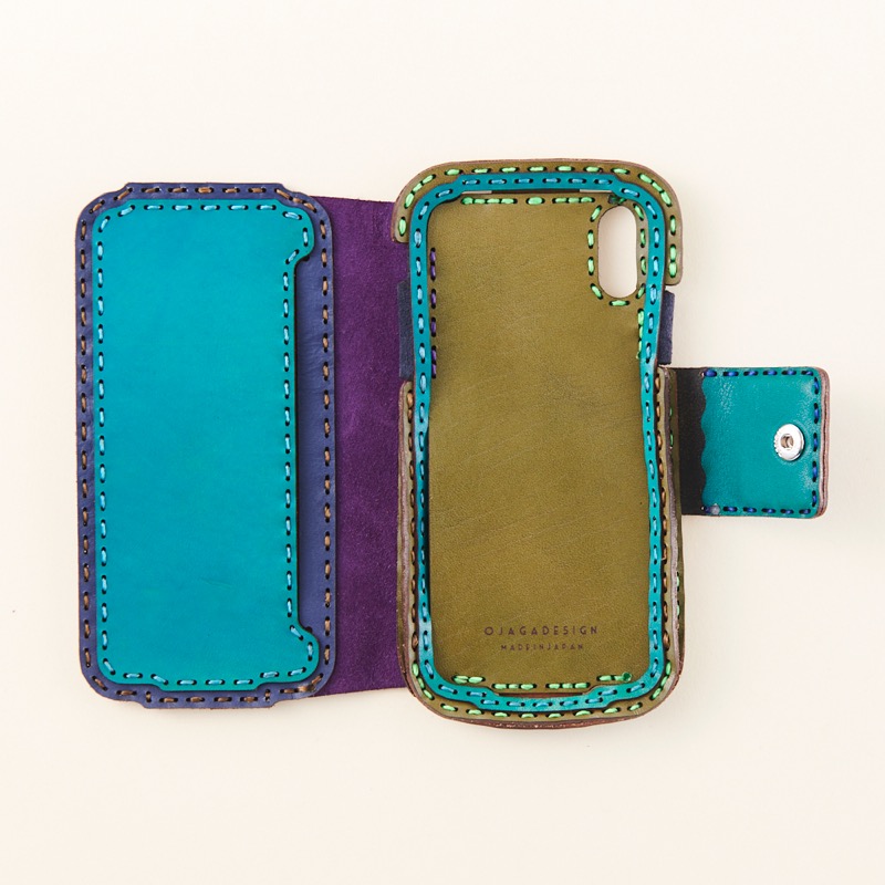 ダイアリータイプのiPhone X / XSケースです。表面と背面に入ったクロスステッチがポイント。カラーを大胆に切り替えることで、シンプルながらにカラフルなアイテムになりました。フタの裏についたポケットは中に仕切りがあり、便利にお使いいただけます。従来のタイプではなく、重ねずに革でマチを作ることでスッキリとしたフォルムになり、スリムな見た目に仕上がりました。※お使いの充電器によってはワイヤレス充電機能がお使いいただけない場合がございます。