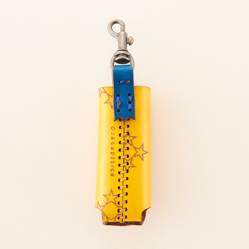 編み込み風のデザインを施したライターケースです。シンプルに一枚の革で仕上げたケースをベースに、革で表現した編み込み風のデザインを配置。上部にナスカンが付いているのでベルトループやタバコケースのファスナーなど、様々なところに簡単に着脱が出来、ライターの紛失防止にも役立ちます。BICのライターがぴったり入るサイズです。