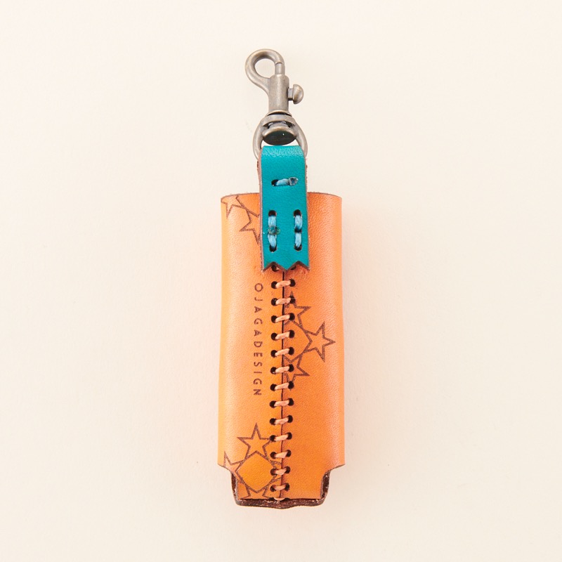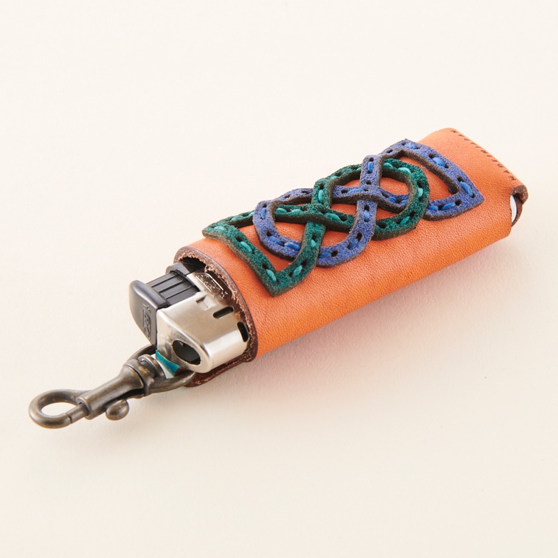 編み込み風のデザインを施したライターケースです。シンプルに一枚の革で仕上げたケースをベースに、革で表現した編み込み風のデザインを配置。上部にナスカンが付いているのでベルトループやタバコケースのファスナーなど、様々なところに簡単に着脱が出来、ライターの紛失防止にも役立ちます。BICのライターがぴったり入るサイズです。