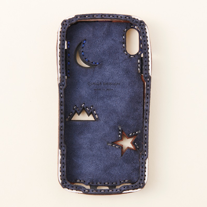 パッチワークデザインのiPhone XS Max用ケースです。月、星、山のデザインで対応機種によってデザインが異なり、星や月の小さなくり抜き、デザインにステッチを取り入れたりと、個性豊かなアイテムに仕上がりましたサイドのマチ部分にもさりげなくデザインが入りました。マチまでレザーで仕上げることで保護性が高くなるだけでなく、長く使うことで手にしっくりと馴染みます。※お使いの充電器によってはワイヤレス充電機能がお使いいただけない場合がございます。