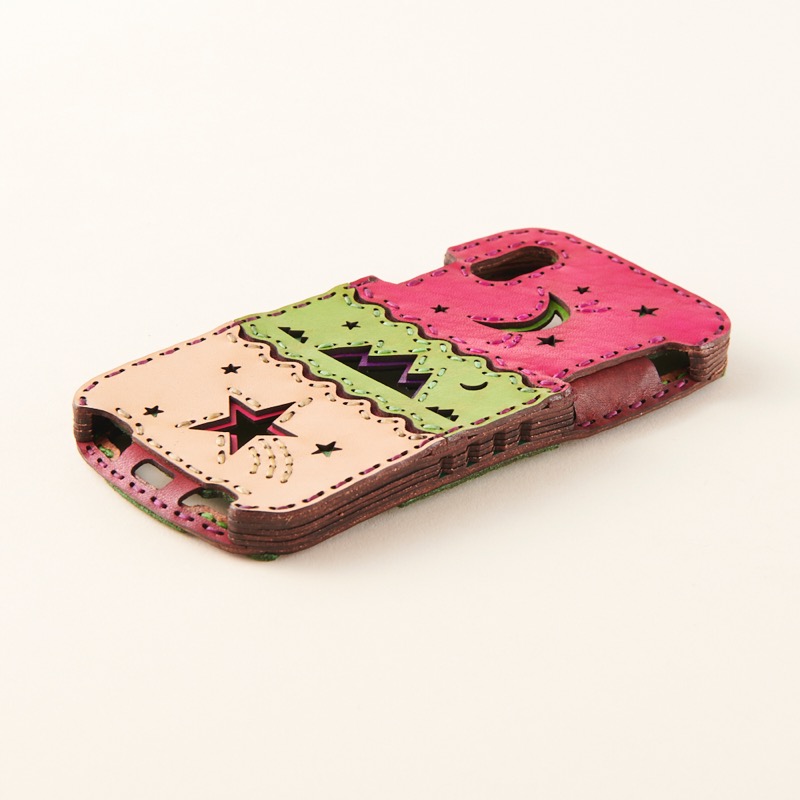 月、星、山のデザインで対応機種によってデザインが異なり、星や月の小さなくり抜き、デザインにステッチを取り入れたりと、個性豊かなアイテムに仕上がりました