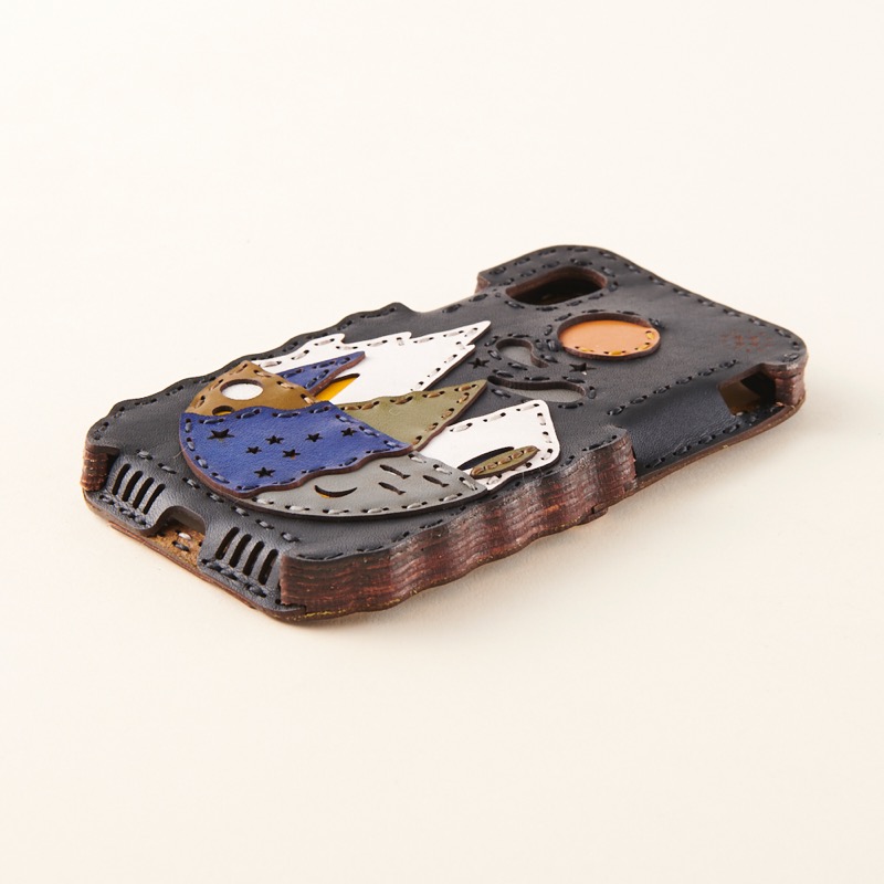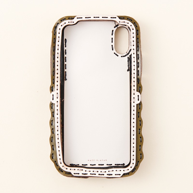 iPhone本体をしっかりと覆うことが出来、側面にもレザーを使用することで保護性を高め、ウェーブ状のカットを施すことで持ちやすさも重視。