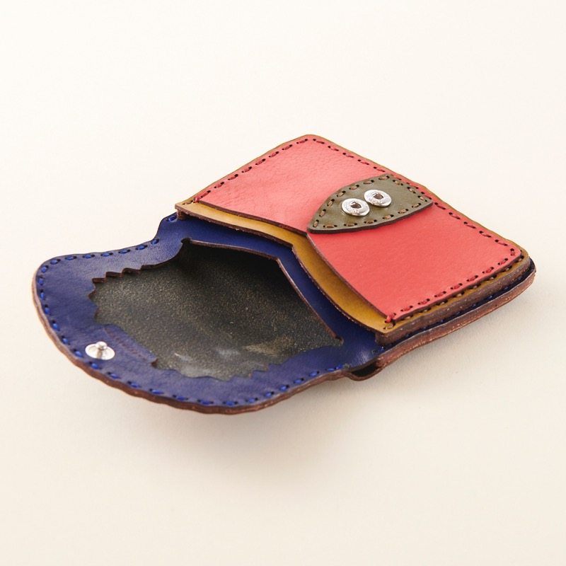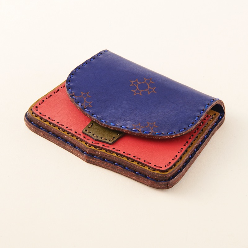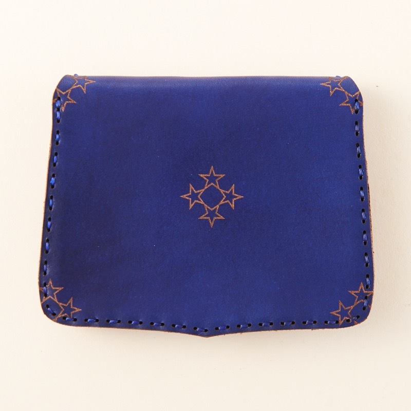 「オジャガデザイン」のロゴマークである、五芒星の焼印が入ったコイン&カードケースです。2つ付いたボタンフックは用途に合わせてサイズを調節できます。コンパクトで持ち運びしやすいアイテムとなっています。