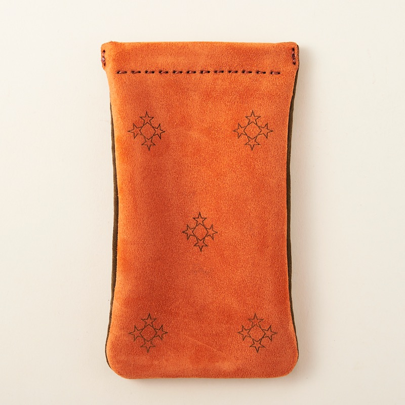 オジャガスターの焼印と、レザータグでシンプルかつおしゃれなメガネケースです。