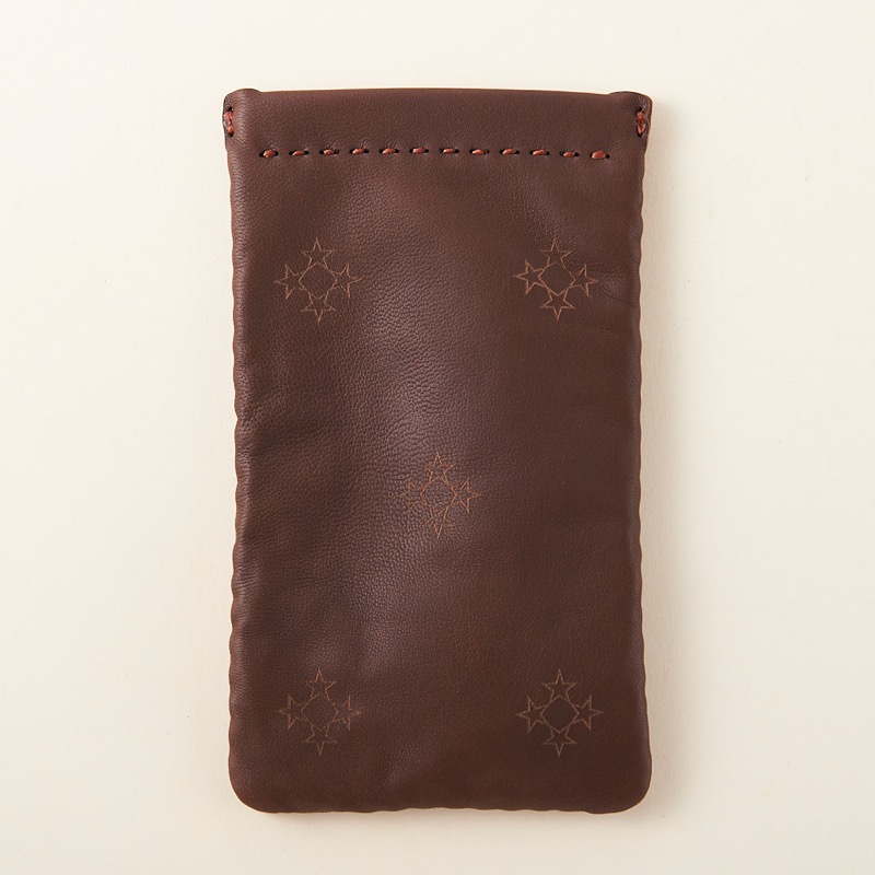 オジャガスターの焼印と、レザータグでシンプルかつおしゃれなメガネケースです。