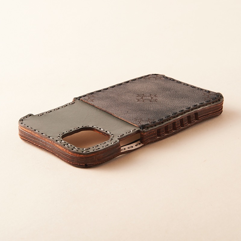 カードポケット付きiPhone 11ケースが登場しました。背面を一枚の革で仕上げ、カードポケットにオジャガスターを配置したシンプルなデザインです。定番のシンプルデザインiPhoneケースをiPhone11に合わせてアップデート。サイドはボタンを直接押せる仕様で、使い勝手がさらに良くなりました。※画像5枚目はカードを入れた際の参考画像です。※こちらの商品は、革本来の質感が出やすいカラーの為、革独特のシワや筋といった線状の傷のようなものが表面に出やすくなっております。ご了承の上、お買い求めください。