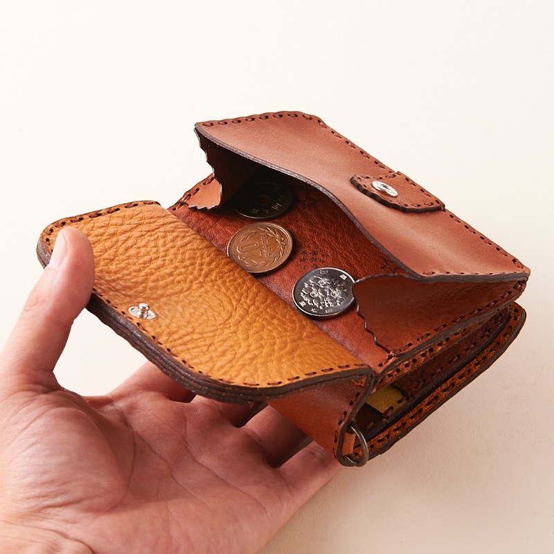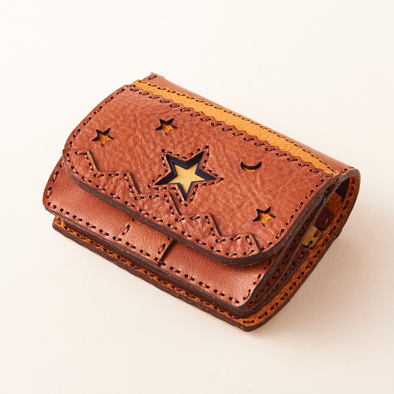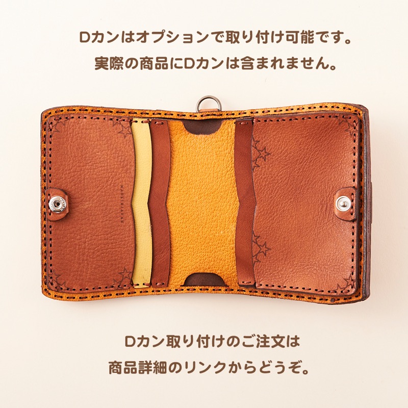 コインケースが表に付き、豊富なカードケースが内側に入った二つ折りタイプのショートウォレットです。波形のギザギザに五芒星と月のマークが 夜空をイメージさせるデザインになっています。内側にロゴの焼き印を施した、カラフルで可愛らしい仕上がりになっています。※商品のDカンはオプションで取り付け可能です。Dカン取り付けのご注文はこちらから↓https://szhotelkc.com/products/detail/15871?category_id=カラーバリエーションも豊富に展開中!お気に入りのカラーをお探し下さい↓https://szhotelkc.com/products/list/393その他のショートウォレットはこちらから↓https://szhotelkc.com/products/list/143ロングウォレットをお探しの方はこちら↓https://szhotelkc.com/products/list/144※写真掲載の小物は含まれません。