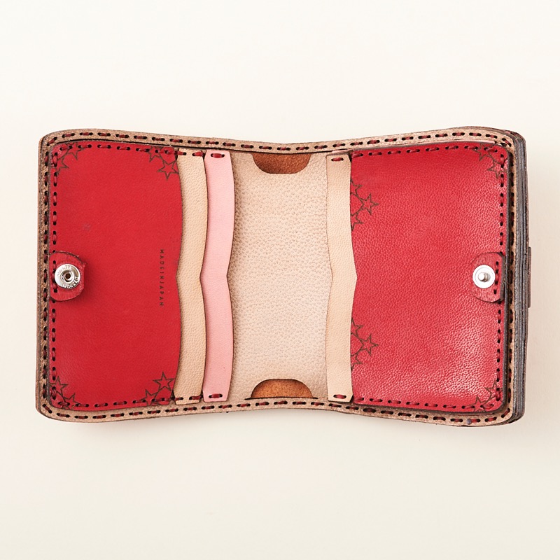 レッドとナチュラルなレザーカラーを基調とした新色のANTLIAが登場!柔らかなカーブを描いたディティールと、繊細なステッチワークが秀逸な八芒星のショートウォレットです。外側に付いたコインケース部分は小銭が見やすい大きめな作りになっており、カードケースはたくさんのカードの収納が出来るよう、マチが付いております。使い込むほど味がでてくる革ならではの風合いを楽しめます。※商品のDカンはオプションで取り付け可能です。Dカン取り付けのご注文はこちらから↓https://szhotelkc.com/products/detail/15871?category_id=カラーバリエーションも豊富に展開中!お気に入りのカラーをお探し下さい↓https://szhotelkc.com/products/list/394その他のショートウォレットはこちらから↓https://szhotelkc.com/products/list/143ロングウォレットをお探しの方はこちら↓https://szhotelkc.com/products/list/144※写真掲載の小物は含まれません。