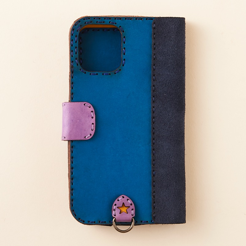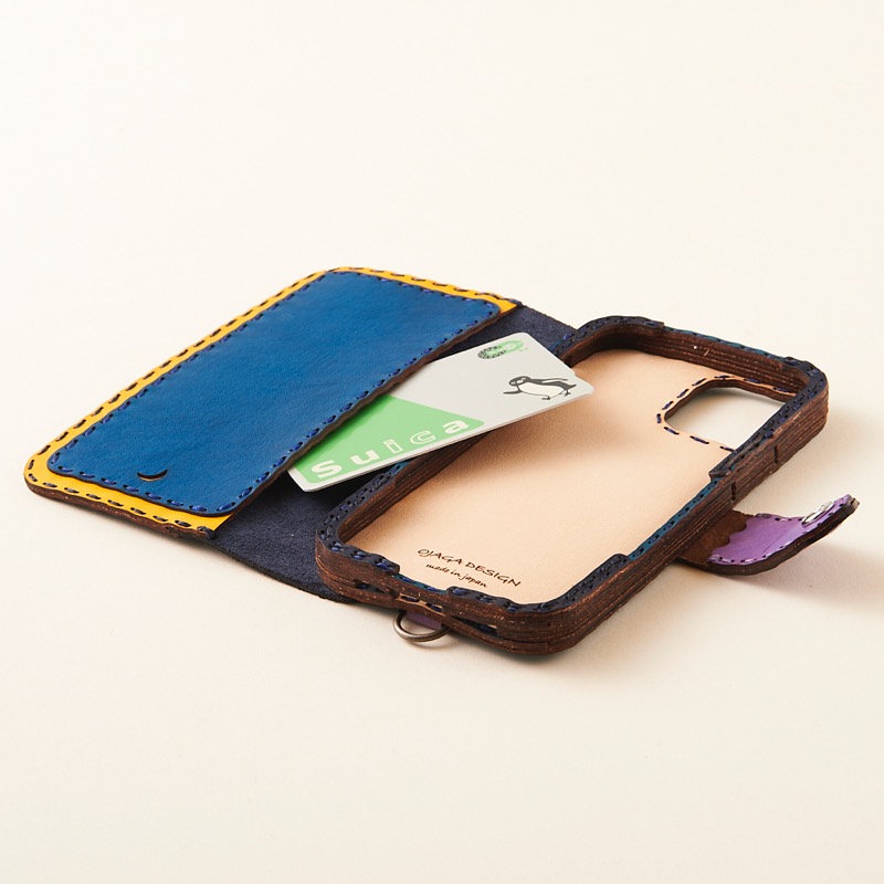 ケース側面をすべてレザーで覆った保護性の高いデザインで、サイドボタンも革の上から操作可能です。