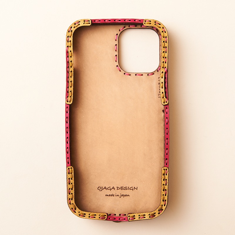 ケース側面をすべてレザーで覆った保護性の高いデザインで、サイドボタンも革の上から操作可能です。