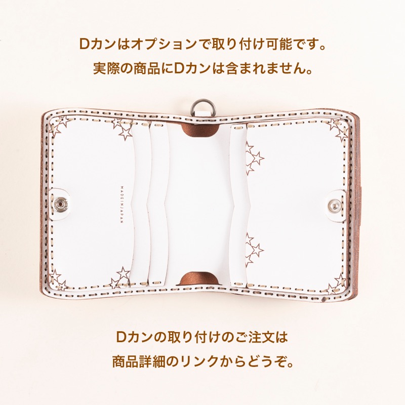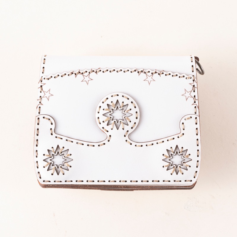 白を基調とした新色のANTLIAが登場!柔らかなカーブを描いたディティールと、繊細なステッチワークが秀逸な八芒星のショートウォレットです。外側に付いたコインケース部分は小銭が見やすい大きめな作りになっており、カードケースはたくさんのカードの収納が出来るよう、マチが付いております。使い込むほど味がでてくる革ならではの風合いを楽しめます。※商品のDカンはオプションで取り付け可能です。Dカン取り付けのご注文はこちらから↓https://szhotelkc.com/products/detail/15871?category_id=カラーバリエーションも豊富に展開中!お気に入りのカラーをお探し下さい↓https://szhotelkc.com/products/list/394その他のショートウォレットはこちらから↓https://szhotelkc.com/products/list/143ロングウォレットをお探しの方はこちら↓https://szhotelkc.com/products/list/144※写真掲載の小物は含まれません。