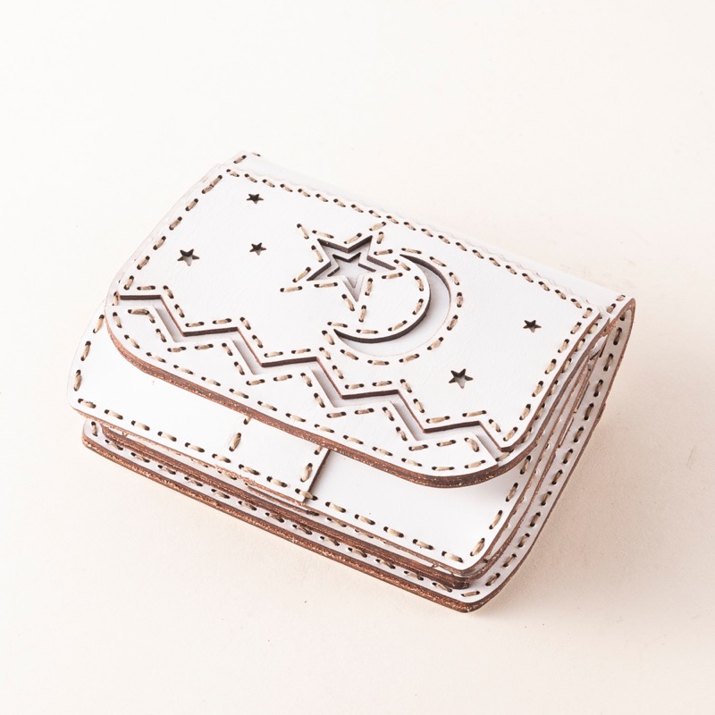 白を基調とした新色のVIRGOが登場!真ん中に月と五芒星がデザインされたショートウォレットです。外側に付いたコインケース部分は小銭が見やすい大きめな作りになっており、カードケースはたくさんのカードの収納が出来るよう、マチが付いております。使い込むほど味がでてくる革ならではの風合いを楽しめます。※商品のDカンはオプションで取り付け可能です。Dカン取り付けのご注文はこちらから↓https://szhotelkc.com/products/detail/15871?category_id=カラーバリエーションも豊富に展開中!お気に入りのカラーをお探し下さい↓https://szhotelkc.com/products/list/395その他のショートウォレットはこちらから↓https://szhotelkc.com/products/list/143ロングウォレットをお探しの方はこちら↓https://szhotelkc.com/products/list/144※写真掲載の小物は含まれません。